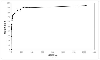 圖3:去除鋅與時間的關系。重復進行實驗,結果范圍最大為3個百分點。