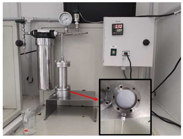 為了生產聚合物膜,聚偏二氟乙烯和1-甲基-2-吡咯烷酮分別用作聚合物和溶劑。圖1展示了用于制備涂料的過程。最初,聚合物PVDF使用加熱套在60至70℃的溫度范圍內完全溶解在1-甲基-2-吡咯烷酮溶劑中(圖1a)。為了獲得更好的合成膜滲透通量,加熱套溫度應始終保持在上述范圍內。然后將涂料溶液注入干凈的瓶中,再將所需量的粉末活性炭添加到原液中以生成用于混合膜的原液。最后,將裝有涂料溶液的玻璃瓶放入超聲波儀中8小時,以確認添加劑的均勻混合,在制備的涂料中沒有產生任何氣泡。制膜過程使用甲半自動膜澆鑄機施加到合成使用干-濕相處理的平片膜。
