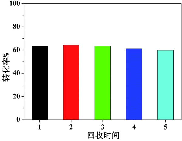 進行回收試驗以研究活性炭催化劑的異質性和穩定性。第一次催化反應完成后,過濾回收活性炭載鉑催化劑(硫酸活化),用蒸餾水洗滌,55℃真空干燥12小時,重新用于第二次催化反應。在另外三個運行中實施了相同的操作。同時,在第一次運行后,通過檢測回收的活性炭催化劑和濾液中的鉑量。圖3展示了回收試驗的結果。觀察到甲基環己烷的轉化率在59.8-64.4%范圍內有小幅波動,表明活性炭催化劑的活性在重復使用4次后幾乎沒有下降,表明活性炭催化劑具有良好的穩定性。第一次運行后,反應中的鉑浸出量為0.33ppm。當鉑催化劑從反應體系中過濾出來時,在濾液中很少觀察到催化反應,這證明了活性炭載體上的鉑作為非均相活性位點。