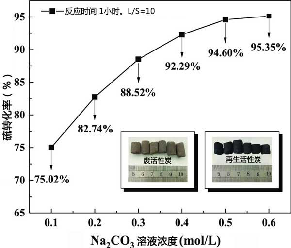 Na2CO3濃度對(duì)廢活性炭硫轉(zhuǎn)化率的影響