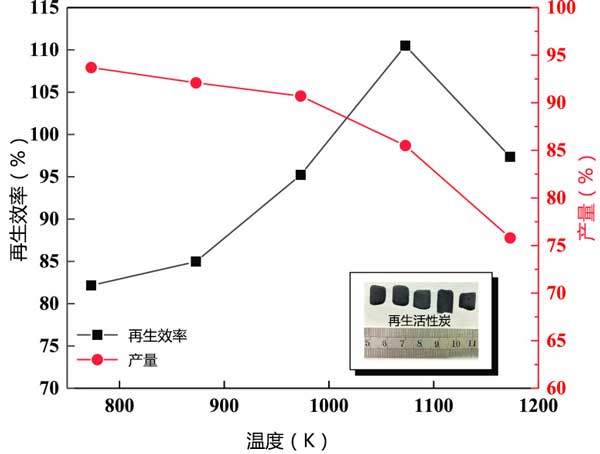 圖4:活化溫度對(duì)再生效率和產(chǎn)率的影響。