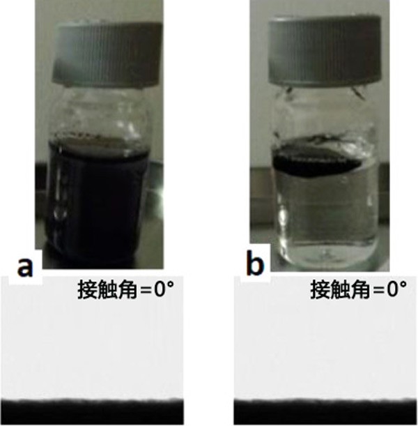 圖2:所制備的活性炭的兩親性質,(a)親水表面,(b)親油表面。