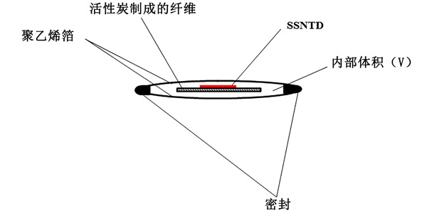 帶溫度補(bǔ)償?shù)幕钚蕴刻綔y(cè)器模塊設(shè)計(jì)如圖1所示。內(nèi)部傳感器使用活性炭吸附器和固體核徑跡探測(cè)器(SSNTD)。在本實(shí)驗(yàn)中,使用了三種活性炭制成的纖維。活性炭用作氡收集器/散熱器,而SSNTD則檢測(cè)輻射量。補(bǔ)償模塊的壁由低密度聚乙烯或高密度聚乙烯箔制成。根據(jù)造型選擇箔的厚度和表面積,以達(dá)到合適的溫度補(bǔ)償。。當(dāng)探測(cè)器在探測(cè)器模塊外時(shí),校準(zhǔn)系數(shù)為CF0。然而,當(dāng)探測(cè)器放置在其校準(zhǔn)因子內(nèi)時(shí),平衡時(shí)將為CF =CF0.ρ,其中ρ是“穿透率”,即模塊體積內(nèi)空氣中的平衡時(shí)氡濃度與濃度的比值在它周圍的空氣中。CF0與吸附容量k成正比并且遵循與k相同的溫度趨勢(shì),而CF與kρ成正比。正如在其他地方所指出的,穿透體積中壁的部分ρ隨著溫度的升高而增加,因此溫度的趨勢(shì)與k的趨勢(shì)相反。選擇氣體擴(kuò)散通過(guò)的壁材、厚度、壁表面積和“補(bǔ)償模塊”的體積,以使kρ的溫度變化在應(yīng)用的溫度區(qū)間內(nèi)盡可能小。