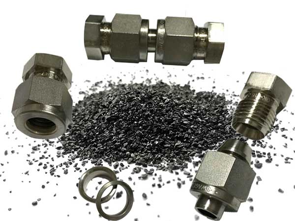 活性炭對脂肪酸的脫羧反應在微批量反應器中進行,該反應器由一個管和兩蓋組裝而成。微批反應器及其部件的照片如圖1所示。將一定量的反應物和活性炭催化劑加入反應器中。此后,將密封的反應器置于流化砂浴中,將其加熱至所需的反應溫度。在所需的反應時間過去后,將反應器放入水中以淬滅反應。沖洗反應器中的反應混合物并用丙酮在10mL容量瓶中稀釋。然后過濾稀釋的溶液用于分析。