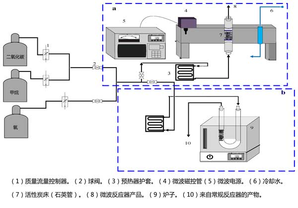 圖1:微波和甲烷干重整的常規設置的示意圖。