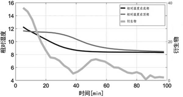 圖4:反應器內的相對濕度和出口中二氧化碳的衍生物。