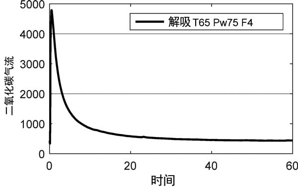 在實驗中通過在溫和溫度下的水分振蕩進行解吸實驗,以使活性炭中碳酸鉀再生回碳酸鉀倍半水合物在升高的溫度和氮氣流下的再生步驟將具有大的能量損失,使這個過程在經濟上不可行。圖5顯示了二氧化碳濃度峰值剛好低于5000ppm。質量平衡表明,在實驗中釋放了吸附的總二氧化碳的50%。盡管最大二氧化碳濃度對于實際應用來說不夠高,但該實驗證明了在活性炭內碳酸鉀倍半水合物和碳酸鉀之間循環的概念。需要進一步優化解吸過程。