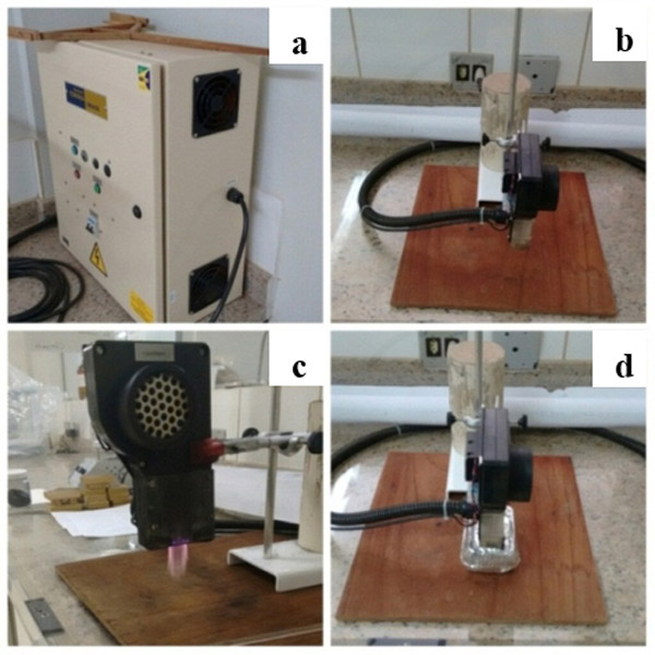 電處理用于促進(jìn)樣品的表面氧化。將樣品放在鋁箱中(圖1d),目的是為了均勻處理并避免過程中的損失,因?yàn)榛钚蕴砍史勰睿⑶遗c放電接觸會(huì)造成損失。使用了四種電處理,改變了樣品對放電的暴露時(shí)間。標(biāo)準(zhǔn)處理方法之一(T1)。因此,在該處理中沒有進(jìn)行曝光放電。其他處理的曝光時(shí)間分別為2、5、8和10分鐘(分別為T2,T3,T4和T5)。每次處理稱重約2.0 g的活性炭。電擊頭部高度確定為4.5厘米。