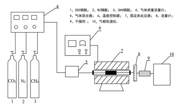 在動態條件下,將二氧化碳捕集在特殊的固定床反應器中,將活性炭樣品放入其中,并使給定成分的氣體混合物通過。在這種情況下,控制進出混合物的流速以及反應器中的溫度。氣相色譜儀用于確定吸附的二氧化碳量。在動態條件下確定吸附活性的實驗裝置示例如圖3所示。為了研究靜態條件下活性炭對二氧化碳的吸附過程,使用了自動裝置,該裝置可以記錄在各種溫度(25°C和0°C)和最高1atm的壓力下的吸附-解吸等溫線。可以在設備上通過體積法在1atm以上的壓力下吸附CO2。在這種情況下,可以在40至160°C的溫度范圍內以及最高36atm的壓力下進行測量。
