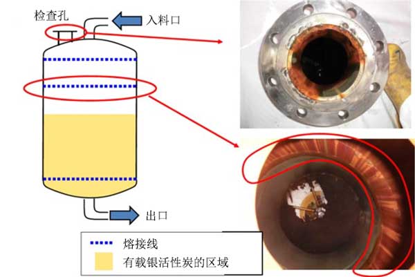 圖1:在活性炭吸附塔中觀察到的縫隙腐蝕的例子。